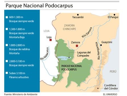 El parque nacional se encuentra ubicado en el límite fronterizo de las provincias de Loja y Zamora Chinchipe. Cuenta con un relieve muy irregular formado por montañas y colinas.